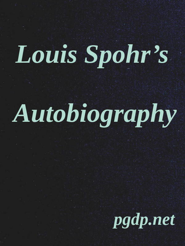 In publishing an English translation of the unadorned yet highly interesting Autobiography of the celebrated Violinist and great Composer Louis Spohr, we consider we are but satisfying a natural desire on the part of his many admirers in this country to become more intimately acquainted with both the public and private life of this great musical genius—this noble, manly character, in whom were combined in so high a degree the qualities of the true artist with those of the really great-minded and thoroughly good man.