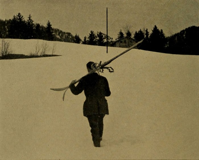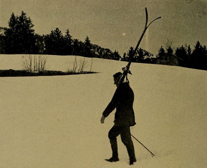 Probably every one likely to read this book knows that a ski is a snow-shoe or skate, and that it is a long narrow plank turned up in front, but he may not have a very clear idea of the use of it.