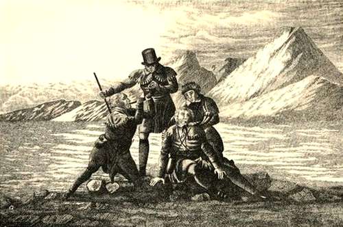 Engagements with hostile Indians were of frequent occurrence. Early in November, many of their party having deserted and all of their horses being stolen, the remainder[15] built themselves canoes, and embarked upon the river. Communication with the natives being only possible through the sign language, our adventurers misunderstood their informants to declare that a Spanish settlement existed at the mouth of the Colorado; and in expectation of here finding succor, they continued down that great waterway to its mouth. There they met with nothing but deserted shores, and tidal waves which seriously alarmed and disturbed these fresh-water voyagers. Finding the ascent of the swift current beyond their powers, they had now no recourse but to bury their store of furs, and strike across the rugged peninsula of Lower California toward the Spanish settlements on the Pacific coast. The story of their sufferings in the salt lakes and deserts of this barren land is told with more vigor than delicacy. Arrived at a Dominican mission on the western slope of the mountains, the weary travellers were received with suspicion rather than hospitality. Being placed under surveillance, they were forwarded to San Diego, then the residence of the governor of the Spanish settlements of California.