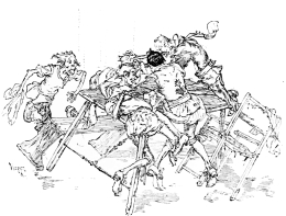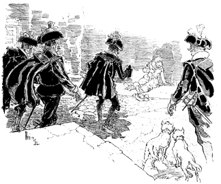 However, it cannot any longer be said that the illustrator’s life is not reasonably successful. The Paris Exhibition of 1889 brought the gold medal, to which I have referred, to Vierge for these very drawings, and the French nation has since decorated him, and in his case it certainly was a reward for merit and nothing else. Then, also, in illustrating a book like Pablo, of course a certain amount of latitude was allowable. The artist could pick and choose his architecture in the most picturesque spots of Spain, and produce a harmonious whole. Nor did he have to consider Quevedo’s personal whims; in this case the author, being dead, could not demand that the artist should illustrate exactly those portions of his work which are not illustratable, or which do not appeal to him. He could work away at just the time when he wished to; having no Salon to get ready for, he could make his drawings in whatever fashion he chose, trying all kinds of methods and experiments, with no hanging committee to reject him because his originality would cast their own productions into the shade; he could then have his drawings joyfully accepted by a publisher, and work sympathetically with the engraver and printer. But it was just when he thought success within his grasp, and the book was almost finished, that he was paralysed. Vierge’s case, so far as the first edition of Pablo is concerned, is one of the most cruel. The relations of artists and publishers that is, publishers who understand the production of fine books—have usually been happy. But there are exceptions.