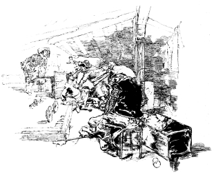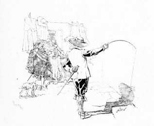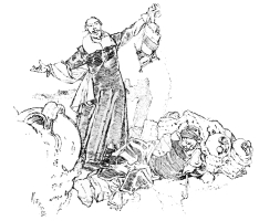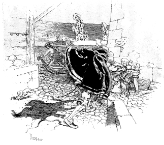 The ninety little process blocks in Bonhoure’s edition showed the knowledge of the past, combined with the brilliancy and go of the present. But after a certain page there came a blank, and the letter-press dragged on—a libretto without the music. All that one knew was contained in a short note by the publisher: Vierge had been stricken with a grave malady, for some years he disappeared as a working artist. Those years, however, were spent in struggling against an affliction which would have killed a man less strong, but from which he has emerged able to complete his most important work. I am sure that Vierge would be the last, either himself to advertise his frightful misfortune, now happily over, or to wish to have it advertised by others. It is enough to say that when his entire right side was paralysed, and he lost the power of speech, he simply trained himself to work with his left hand, and to-day, as is proved by the last twenty illustrations in this book, and the pages of Le Monde Illustré week after week, he is producing drawings which are unsurpassed.
