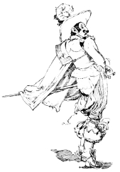 AT a certain inn I met with a company of strolling players, who were going to Toledo, and had three carts with them. It pleased God that among the gang I found one who had been my fellow-student at Alcalá, who had played the wag, and was turned actor. I told him what a mind I had to go to Toledo, and he scarce knew me for the scar across my face, and he could not forbear crossing himself at the sign of my cross.[21] In conclusion, for a small spill of money, he was so much my friend as to prevail with the rest to let me go with them. We were a scratch lot, men and women together, and I was mightily taken with one of the crew, who was the chief dancer, and acted the queen and other great parts in plays, for she was a notable jilt. Her husband happened to sit next to me, and not thinking to whom I spoke, but following my inclination, I asked him, “How could a man do to have a little talk with this woman, that I might spend twenty crowns upon her, for I have a great liking to her?” “It does not become me to answer your question, as I am her husband,” replied the man, “nor is it fit I should talk of any such thing; but to speak without feeling, for I have none, she deserves to have any money spent upon her, for there is not a more dainty bit of flesh upon the earth, nor such a playsome wench.” This said, he leaped out of the cart, and got into another, in all likelihood that I might have an opportunity of making my addresses to her. I was pleased with the man’s answer, and perceived it may be said of such men, that they had wives as if they had none. I laid hold of the opportunity; she asked me whither I was going, and some questions concerning my life and circumstances; and in conclusion, after much talk, postponed the affair to Toledo.