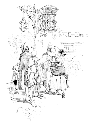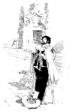 I have no intention of going into the analysis of the motives which prompted Vierge to undertake the illustration of Pablo de Segovia. I have never asked him why he took it up, and most likely if he were asked it would be impossible for him to suggest any reason, other than that the book appealed to him. I do not believe that any artist could definitely explain why he endeavoured to produce a certain work of art. He merely wanted to do it, and then the opportunity presented itself. Nor do I think the literary artist would know why he wrote a certain novel. The idea came to him, and he had to. The literary man can describe his sensations, and tell you how he actually walked across the street to see a house, or re-wrote a page which did not please him, or hunted for months for a character: it is the fashion for him to do so. The artist experiences the same sensations. He not only has to go across the street to see the house, but he may probably have to stand before it, on the side-walk, for a couple of days amidst the crowd and traffic, working under the most difficult conditions; he too has to search for his model, and, when he has found him, obtain the actual costumes he wants, or have them made. The literary man, too, can get almost all his accessories out of books, or if he has to go to a Museum and cannot send some one, a glance and a few words are enough. The result, if well done, is hailed as great literature; but the artist, who probably has worked quite as long, quite as hard, and put quite as much brains into his work, is told, if he is told anything, that his drawings are pretty. He seldom has the opportunity of showing how well and how faithfully he has done his part. It is more than possible that if he has really studied his subject carefully the author will not like the result, and the public will complain because the artist has given them more than the author was able to make them see for themselves, or else they will demand a photograph because he has made them look at nature with his eyes.
