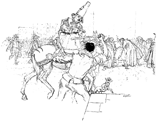 This was some satisfaction to me for the unlucky accident before. I got up in the morning to hire a horse, but they were all let, by which I perceived there were more in my case besides myself. To walk the streets a-foot did not look well, especially at that time. I went towards St. Philip’s, where I found a lawyer’s footman with a horse in his hand, waiting for his master, who had just alighted to hear mass in that church. I clapt four reals in his hands, to let me ride two or three turns along the next street, where my mistress lived. He consented; I mounted; rode twice up and down the street, without seeing anybody, but at the third turn Donna Anna looked out. When I saw her, thinking to show off my horsemanship, and being but an indifferent jockey and unacquainted with the horse’s qualities, I gave him two cuts with the whip, reining him in at the same time; he reared first, then striking out behind, set a-running at full speed, so that I came clear over his head into a puddle. I had no other recourse in this pitiful plight, all beset with boys, and in the presence of my mistress, but to cry out, “A cursed dog! My sorrel would never have done so. I shall pay for these mad pranks one time or other. They told me of his tricks, and yet I would needs be defying him.” By this time the footman brought me the horse again, for he had stopt as soon as he had thrown me; I mounted again, and Don Diego Coronel, who lived in the same house with his kinswoman, hearing the noise, looked out. The sight of him startled me very much; he asked, “Whether I had any hurt?” I answered, “No,” though at the same time one of my legs was almost lamed. The footman pressed me hard to give him his horse, for fear his master should come out of the church and see me, for he was going to Court. It was my misfortune, that as he was speaking to me, the lawyer came behind us, and knowing his steed, ran at the footman, beating him about the head and face with his fist, and asking him, as loud as he could cry, “How he durst have the impudence to let anybody ride his horse?” And what was worst of all, he turned to me, and in a very angry manner, bade me get down with many curses. All this was in the full view of my mistress and Don Diego Coronel, which put me as much out of countenance as if I had been whipped at the cart’s tail. I was wonderfully cast down and melancholy, and with good cause, to have two such misfortunes befal me upon so small a spot of ground. In fine, I was fain to alight; the lawyer mounted, and went his way; and I the better to carry off the business, staid in the street, talking to Don Diego, and said, “I never mounted such an unlucky jade in all my days. My cream-coloured horse is yonder by St. Philip’s church, and is very hard-mouthed when he sets a-galloping. I was telling some people there how I used to ride him at full speed, and pull him up at one check. They told me, I could not do it with a horse that stood there, which was the lawyer’s you saw; I resolved to try; you cannot imagine what a restive jade it is, and has such a scurvy saddle, that it was a wonder he did not kill me.” “It was so, indeed,” answered Don Diego; “and yet, Sir, you seem hurt in that leg.” “I do so,” replied I, “and therefore I’ll go take my own horse and get home.” The young lady was fully satisfied that all I said was true, for I could perceive she was much concerned at my fall; but Don Diego, who saw farther, grew suspicious through what had happened with the lawyer in the street.