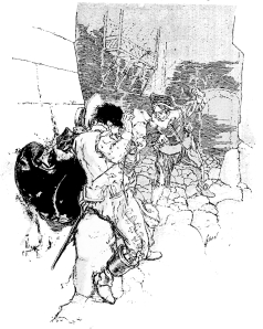 His first publisher thought it enough to state, in the smallest possible types on the title page, that the story of Pablo was illustrée de nombreux dessins par D. Vierge—many publishers are not even so generous as this, and ignore the artist-illustrator altogether. To give the man, to whose genius the whole reason of the new edition was due, a few lines in a publisher’s preface, was, I suppose, very kind and thoughtful and considerate. But the French Government has since decorated Vierge with the Legion of Honour, and the French artists have awarded him a gold medal for these very designs. The charm and interest of the old illuminated missals lie not in the text, which often can be gotten elsewhere or is of no account, but in the pictures or decorations themselves, the work of the illustrators of that day. While the illuminations are prized, the names of the artists are usually forgotten. So, too, the work of contemporary illustrators is almost invariably dismissed by the critic with a sneer or with patronage, if indeed it be noticed at all. Still, there are some of us who know that these great little masters of illustration have spent more time and thought over the production of the cuts which embellish an author, than the author himself did on the text, and not infrequently knows far more about the subject. But because the criticism of books is, as a rule, in the hands of men who know nothing about art, their drawings are ignored. Or perhaps the degeneracy of modern illustration, and the want of ability of engravers and reproductive artists, is lamented by men who could not tell the difference between a process block and an etching, though they are certain that the old work, the originals of which they never saw, is much better than that which we are doing to-day and which they do not want to see.