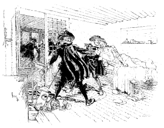 Next came two others, one of them with a cloth coat, reaching but half way down his wide Walloon trunks, and a cloak of the same, with his band ruffled up to hide the lining, which was rent. The breeches were of camlet, but only as far as appeared, for all the rest was of red baize. This man was jangling and wrangling with the other, who wore a ruff for want of a band, a hanging coat for want of a cloak, and went upon a crutch, with one leg bound up in rags and furs, because he had but one stocking. He pretended to be a soldier, and had been so, but a scurvy one and in peaceful regions, and by the privilege of a soldier intruded into any house. He in the coat and half breeches cried, “The one half, or at least a considerable part, is due to me; if you do not give it me, I swear to God——” “Do not swear to God,” replied the other, “for I am not lame at home, and if you prate, I’ll lay this crutch about your ears.” “You shall give it.” “I shall not give it.” So they came to high words, and gave one another the lie; then falling to blows, the clothes in a moment flew all about in rags at the first handling. We parted them, and inquiring into the cause of the quarrel, the soldier cried, “Put tricks upon me! you shall not have the value of a doit. You must understand, gentlemen, that being at St. Saviour’s Church, there came a child to this poor fellow, and asked him whether I was the ensign Juan de Lorenzana? who answered, I was, because he saw he had something in his hand. With this, he brought the child to me, and, calling me ensign, said, ‘Here, Sir, see what this child would have with you.’ I understood the trick, and said I was the man, took his message, and with it a dozen of handkerchiefs, returning an answer to his mother, who sent them to some person of that name. Now he demands half, and I’ll be torn in pieces before I’ll part with them; my own nose shall have the wearing of them all out.” The cause was adjudged in his favour, only he was forbid blowing his nose in them, and ordered to deliver them up to the old woman, to make ruffles and cuffs for the honour of the community, to represent shirt-sleeves; for blowing the nose was absolutely prohibited. When night came we all went to bed, and lay as close together as herrings in a barrel, or tools in a tweezer-case. As for supper, there was not so much as a thought of it; most of the gang never stripped, for they were naked enough to go to bed as they went all day.