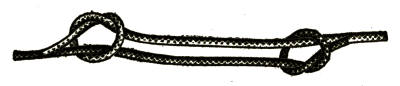 In Fig. 2 is shown the method of knotting together two strands of gut in tying a leader or making repairs in one. The two half-hitches should be pulled perfectly tight and then drawn together.