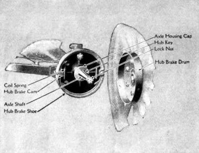 Its chief purpose is to hold the clutch in neutral position. If it were not for this lever the driver would have to stop the engine whenever he left the driver's seat. He would also be unable to crank the engine without the car starting forward with the first explosion. When pulled back as far as it will go, the hand lever acts as an emergency brake on the rear wheels, by expanding the brake shoes in the rear wheel drums. Therefore the hand lever should be back as far as it will go when cranking the engine or when the car is at rest. It should be only in a vertical position, and not far enough backward to act as a brake on the rear wheels, when the car is to be reversed. When the car is operating in high or low speed the hand lever should be all the way forward.