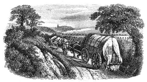 Railways have also proved of great value in connection with the Cheap Postage system. By their means it has become possible to carry letters, newspapers, books, and post parcels in any quantity, expeditiously and cheaply. The Liverpool and Manchester line was no sooner opened in 1830 than the Post-office authorities recognized its utility, and used it for carrying the mails between the two towns. When the London and Birmingham line was opened eight years later, mail trains were at once put on, the directors undertaking to perform the distance of 113 miles within 5 hours by day and 5-1/2 hours by night. As additional lines were opened, the old four-horse mail-coaches were gradually discontinued, until, in 1858, the last of them, the "Derby[xxvii] Dilly," which ran between Manchester and Derby, was taken off on the opening of the Midland line to Rowsley.
