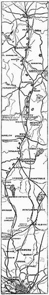These great streams of food, which we have thus so summarily described, flow into London so continuously and uninterruptedly, that comparatively few persons are aware of the magnitude and importance of the process thus daily going forward. Though gathered from an immense extent of country—embracing England,[xxv] Scotland, Wales, and Ireland—the influx is so unintermitted that it is relied upon with as much certainty as if it only came from the counties immediately adjoining London. The express meat-train from Aberdeen arrives in town as punctually as the Clapham omnibus, and the express milk-train from Aylesbury is as regular in its delivery as the penny post. Indeed, London now depends so much upon railways for its subsistence, that it may be said to be fed by them from day to day, having never more than a few days' food in stock. And the supply is so regular and continuous, that the possibility of its being interrupted never for a moment occurs to any one. Yet, in these days of strikes among workmen, such a contingency is quite within the limits of possibility. Another contingency, arising in a state of war, is probably still more remote. But, were it possible for a war to occur between England and a combination of foreign powers possessed of stronger iron-clads than ours, and that they were able to ram our ships back into port and land an enemy of overpowering force on the Essex coast, it would be sufficient for them to occupy or cut the railways leading from the north, to starve London into submission in less than a fortnight.