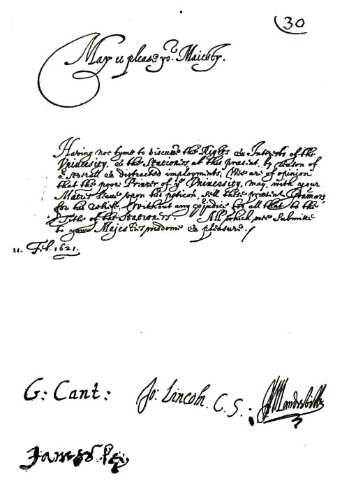 | PETITION OF THE UNIVERSITY TO JAMES I, 1621 | 37 | |