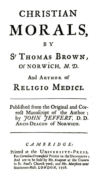 | TITLE-PAGE OF CHRISTIAN MORALS, 1716 | 94 | |