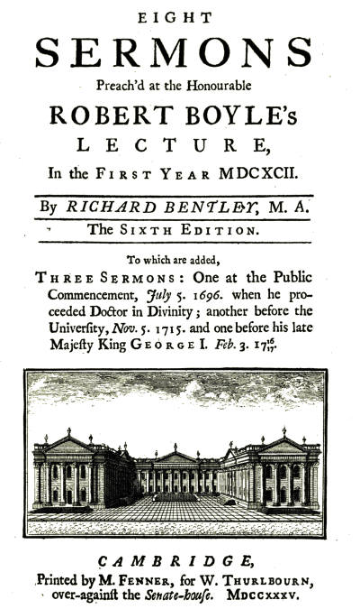 | TITLE-PAGE OF BENTLEY'S BOYLE LECTURES, 1735 | FACING | 99 |