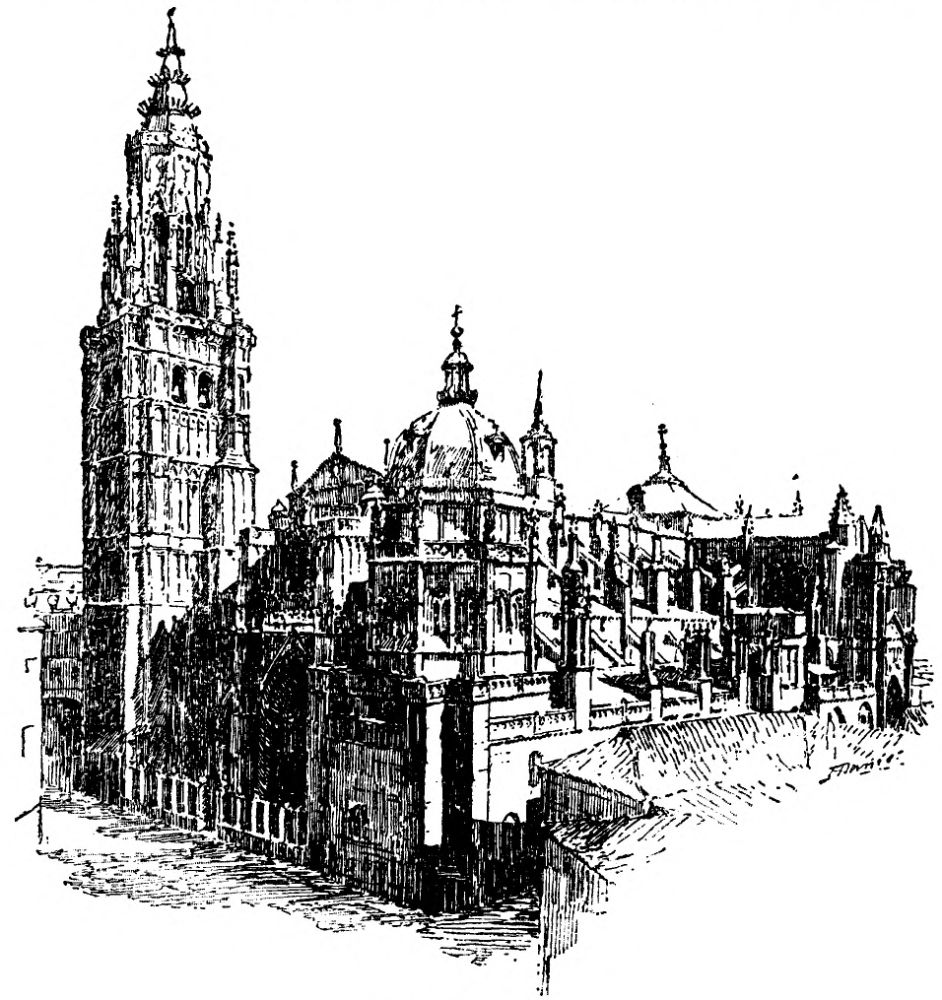 [16] Street’s visit to Toledo was unfortunately hurried, or he would have been forced to change many of his views. Had he seen the cathedral from Nuestra Señora de la Valle, considerably above the bridge of San Martin, he would have found it prominent.
