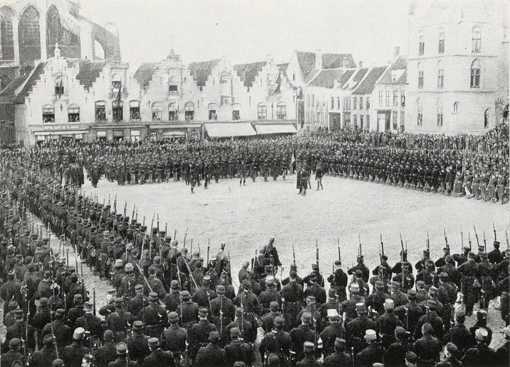 Après la chute de Liége, tandis qu'une armée allemande, poursuivant ses avantages sur la rive droite de la Meuse, repoussait les Français jusque sur leur territoire, une autre entreprenait l'invasion de la Belgique sur un vaste front qui allait du Nord au Sud, poussant devant elle la petite armée belge qui, héroïquement, défendait le terrain pied à pied. Partout, elle commit les mêmes ravages, les mêmes horreurs. D'autres que moi raconteront le martyre d'Aerschot et de Louvain, de Tongres, de Diest, de quantité de bourgs et de villages, de ce gras pays brabançon qui semblait aménagé pour les fêtes, les ripailles et les kermesses, et non pour la guerre. Malines, sœur pensive de Bruges et de Louvain, fut prise et reprise. Plusieurs fois, les Allemands la bombardèrent, visant toujours avec obstination cette noble tour de Saint-Rombaut, qui se dresse dans la plaine flamande comme un flambeau. Mais une fois la ville prise, elle ne fut pas incendiée, ni systématiquement détruite, et si l'opulent pays qui s'étend entre Bruxelles et Anvers a été converti en désert, du moins les Allemands peuvent-ils alléguer qu'on s'y est durement battu, que l'armée belge, retirée dans Anvers, a fait plusieurs sorties qui inquiétaient gravement les derrières de l'armée d'invasion. Mais pour la destruction de Termonde, ils ne sauraient invoquer aucune excuse. C'est après qu'elle eût été évacuée par les dernières troupes belges, que la ville fut systématiquement détruite. Comme elle avait déjà souffert d'un premier bombardement, et qu'elle semblait définitivement acquise à l'armée d'invasion, le bourgmestre vient trouver en suppliant le général von Sommerfeld—tous ces noms sont à retenir—tranquillement assis sur une chaise, devant un café sur la Grand'Place. Il parle, il prie, il pleure, il est au moment de s'agenouiller devant le bourreau de sa ville; mais celui-ci le regarde froidement, répond ces simples mots: «Nein! razieren», et fait signe aux pionniers de commencer.