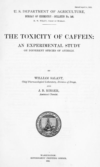 Sir: I have the honor to submit for your approval a manuscript on the toxicity of caffein, which is the first of a series of reports to be made by Dr. Salant on the pharmacology of this drug; the conclusions here reported are, therefore, in some particulars to be regarded as tentative. The data obtained are primarily of use in the execution of the food and drugs act, but are capable of much broader application.