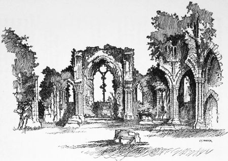 It is best to visit Netley when the crowd may reasonably be expected to have left. At such a time, shortly before sunset, the spot is most impressive. The jackdaws, who seem to have the right of domicile in all ruinated buildings, have gone, clamorous, to bed in the chinks of wall and airy gable, and one shares the smooth lawns only with the robins, whose pretty confidence in the harmlessness of human beings is the most touching thing in so-called "wild" nature. The first stanza of Barham's poem is excellently descriptive of the time and place, save that "roofless tower" is a poetic figure unwarranted by facts—Netley Abbey has no towers: