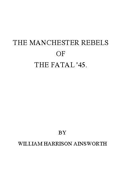 When I was a boy, some elderly personages with whom I was acquainted were kind enough to describe to me events connected with Prince Charles's visit to Manchester, and the stories I then heard made a lasting impression upon me. The Jacobite feeling must have been still strong among my old friends, since they expressed much sympathy with the principal personages mentioned in this Tale—for the gallant Colonel Townley, Doctor Deacon and his unfortunate sons, Jemmy Dawson, whose hapless fate has been so tenderly sung by Shenstone, and, above all, for poor Tom Syddall. The latter, I know not why, unless it be that his head was affixed on the old Exchange, has always been a sort of hero in Manchester.
