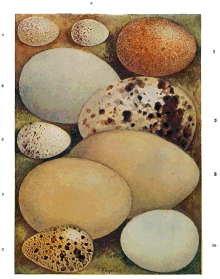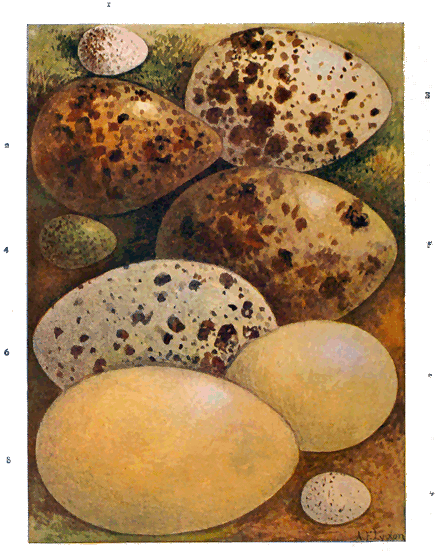 As a further illustration, let us take the eggs of the Golden and Green Plovers, and consider for a moment their size, shape, number, and colour.