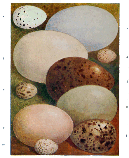 Why Eggs Vary so much in Point of Number.—The number of eggs laid by birds of different orders seems to be regulated by the danger to which they are exposed and the amount of food which the parents will be able to supply.