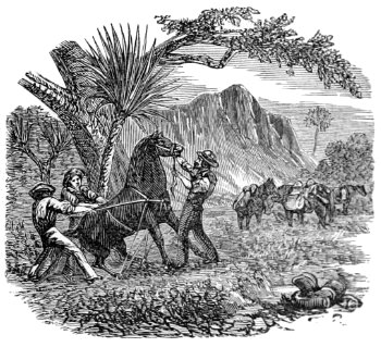 Swinging the Packs of the North Australian Expedition over a Branch of Jasper Creek, Victoria River, 1856 } | Frontispiece. | |