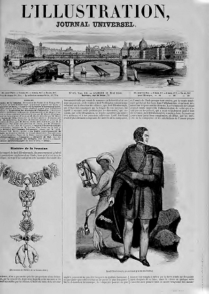 Histoire de la Semaine. Décoration de l'ordre de la Toison d'Or; Portrait de lord Ellenborough, gouverneur général des Indes.--Courrier de Paris.--Courses de la Société d'Encouragement. Tiger sautant une haie; Coupe Janisset gagnée par Commodore Napier.--Exposition des Produits de l'Industrie. (Deuxième article.). Orfèvrerie et Bijouterie. Fontaine à thé de M. Mager; Couvert de chasse et Seau à rafraîchir le vin, par M. Morel; Développement du Seau à glace; Flacon par M. Moret; Bracelet par M. Morel.--Salon de 1844. (Septième et dernier article.) Traîneau par M. Milankiewicz; Giorgione Barbarelli faisant le portrait de Gaston de Foix, par M. Baron: Jeune fille d'Albano, par M. de Madrazo: Vue prise aux environs de Paris, par M. Français; l'Amour de l'or, par M. Couture.--Second-Théâtre-Français. Sardanapale, tragédie de M. Lefèvre. Une Scène du 3e acte--Le dernier des Commis Voyageurs, roman par M. XXX. Chapitre VII. Récit: Agathe.--La Police correctionnelle de Paris. Le Panier à salade; la Grande Souricière; Vue intérieure de la 6e chambre; Types de la Police correctionnelle.--Bulletin Bibliographique.--Allégorie de Mai. Les Gémeaux.--Amusements des sciences. Une gravure.--Rébus.