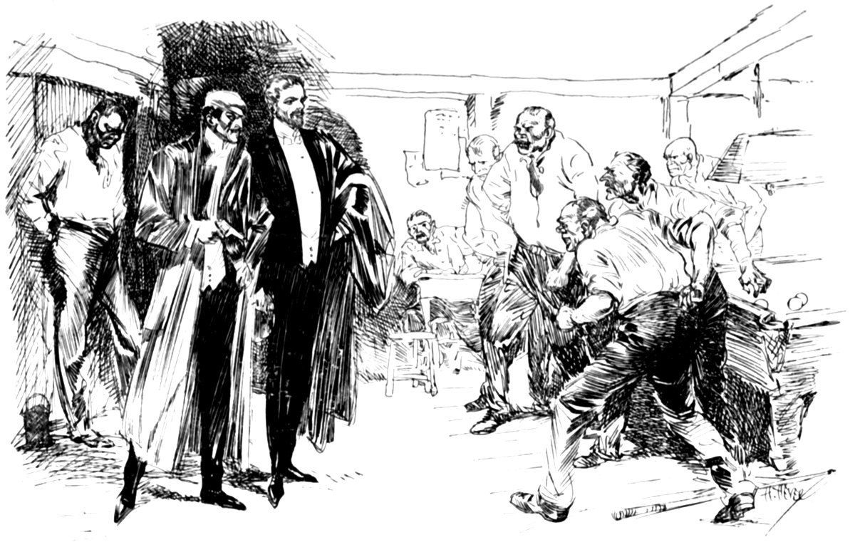 “Permit me,” said the baronet, just as quietly, “to inform you that you are a liar. If you will be good enough to turn over the bundle of socks which you will find in the right-hand corner of the kit-bag as it faces you now, I think you will be able to hand me something that is of interest to us both.”