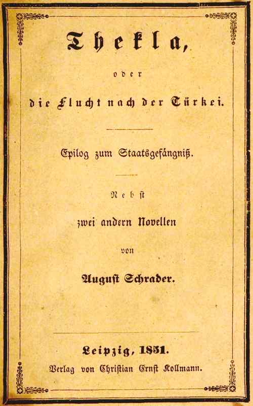 Um dieselbe Zeit, als die Proclamationen des neuen Gouverneurs von Ungarn die Städte erfüllten und eine genaue Personalbeschreibung der flüchtigen Gräfin lieferten, die das Mitleid und die Segenswünsche aller Ungarn begleiteten, verbreitete sich in Semlin das Gerücht, Thekla Andrasy habe sich hierher gewendet, um bei günstiger Gelegenheit auf türkisches Gebiet zu entkommen, das ein großer Theil politischer Flüchtlinge vor Absperrung der Grenze bereits erreicht hatte.