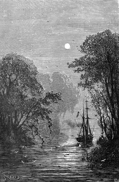 Night approached. Already the sun's disk was disappearing beneath the horizon.—p. 480.