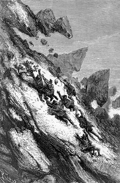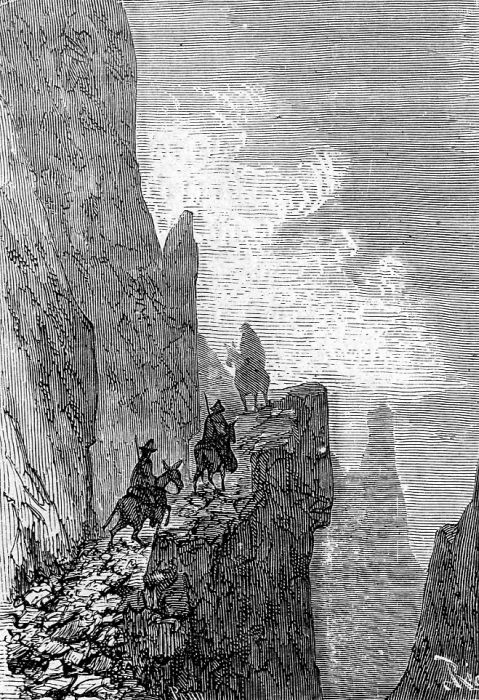 First her husband, and then she, slid down the rope to the point where the perpendicular wall met the summit of the slope.—p. 529.