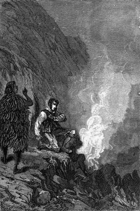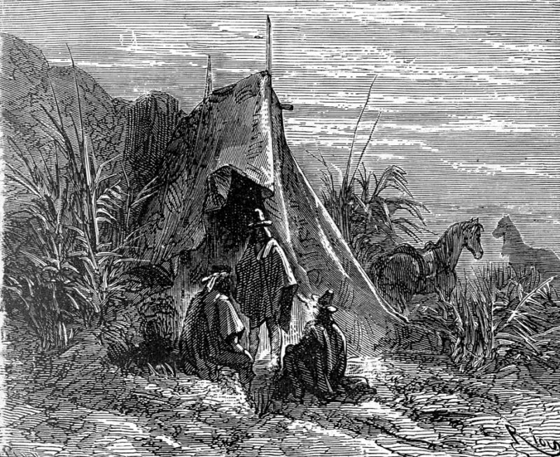 While the fire served to dry their garments conversation beguiled the hours, as they lay or stood at ease.—p. 484.