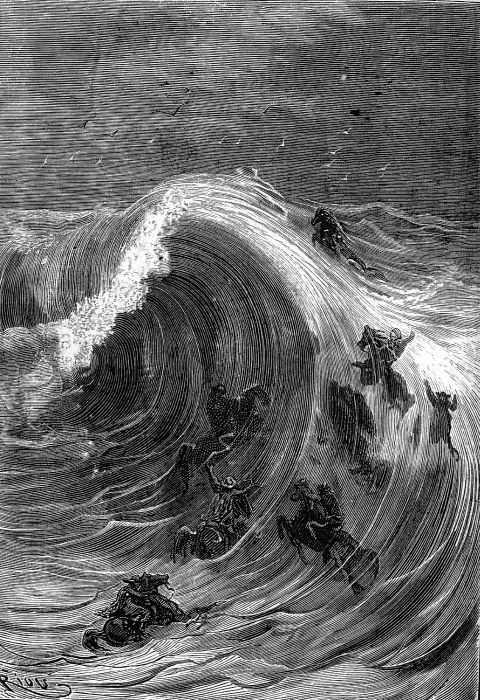 The ladies were carried in their companions' arms, and reached the shore without wetting a single fold of their garments.—p. 481.