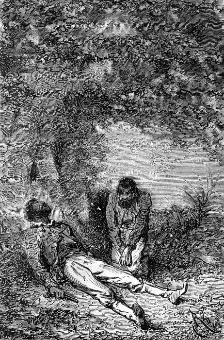 Robert was scarcely within the hut before he climbed on Wilson's shoulders, and succeeded in thrusting his head through an opening.—p. 508.