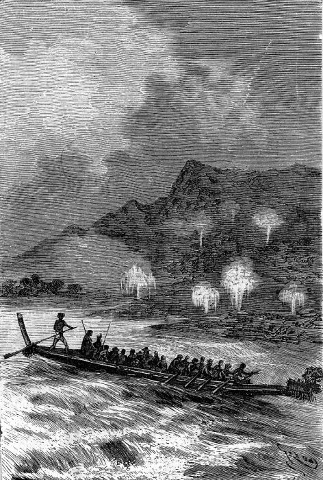 A boat might have been seen ascending the Waikato. It was a canoe seventy feet long and five broad.—p. 496.