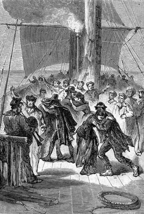Ayrton soon made his appearance. He crossed the deck with a confident step, and ascended the poop-stairs.—p. 576.