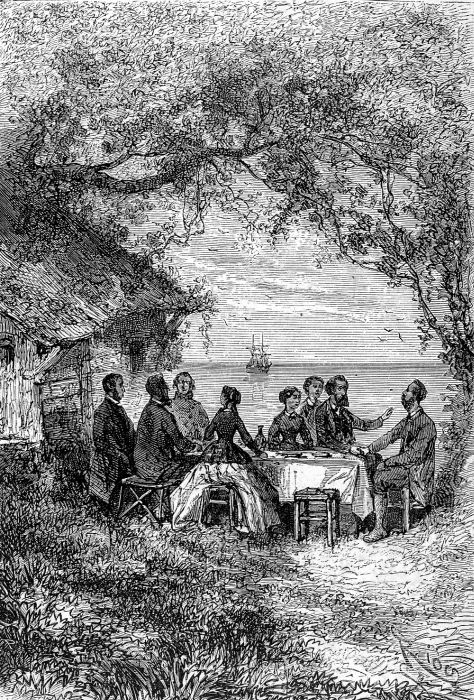 Harry Grant set his table in the shade, and all took seats around it.—p. 608.