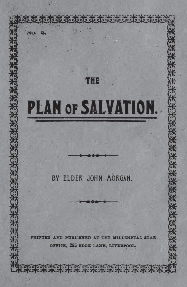 The Project Gutenberg EBook of The Plan of Salvation, by John Morgan This eBook is for the use of anyone anywhere in the United States and most other parts of the world at no cost and with almost no restrictions whatsoever. You may copy it, give it away or re-use it under the terms of the Project Gutenberg License included with this eBook or online at www.gutenberg.org. If you are not located in the United States, you'll have to check the laws of the country where you are located before using this ebook. Title: The Plan of Salvation Author: John Morgan Release Date: August 18, 2014 [EBook #46617] Language: English Character set encoding: ISO-8859-1 *** START OF THIS PROJECT GUTENBERG EBOOK THE PLAN OF SALVATION *** Produced by Villate Brown McKitrick and Jared Ure, Mormon Texts Project Intern (MormonTextsProject.org)