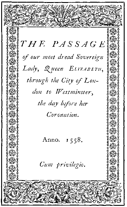 | The Passage of our dread Sovereign Lady, Queen Elizabeth, through the City of London to Westminster, the day before her Coronation. (1558.) | 217 |