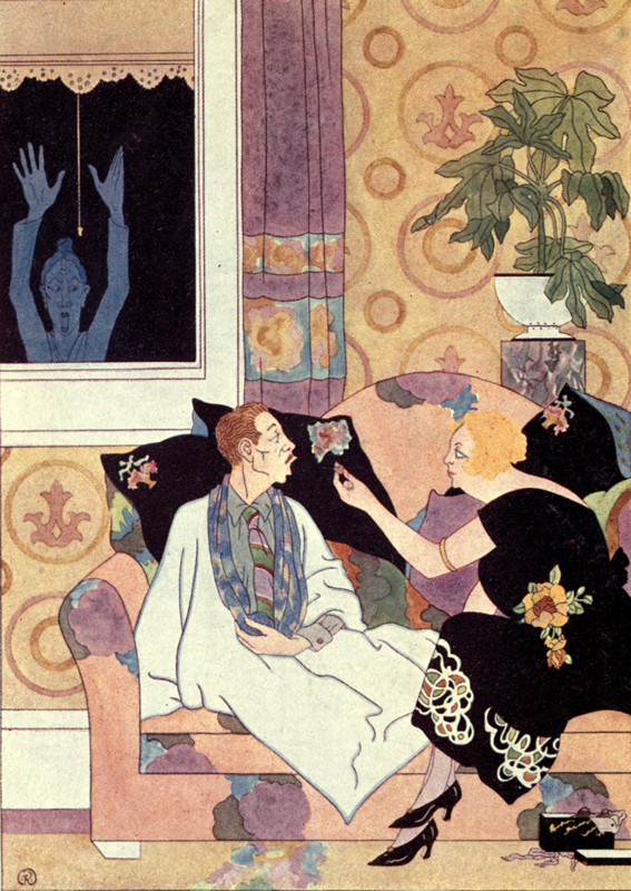 “That’s it,” said my acquaintance, “I couldn’t think of the word. Your women, I believe, were something awful, were they not? Covered with feathers and skins and dazzling colours made of dead things all over them? And they laughed, did they not, and had foolish teeth, and at any moment they could inveigle you into one of those contracts! Ugh!”