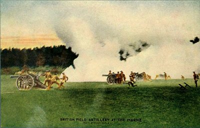 This 18-pound ordnance is of English make, and will shoot both faster and farther than the Krupp guns. Its caliber is 3.3 inches, and the muzzle velocity 1,600 feet per second. The gunners are able to get away 29 shots per minute, while the German rate of fire is only twenty. The maximum effective range is 6,300 yards against 6,000 for any other gun of its class. Each gun and carriage weighs 2,690 pounds. There are six guns in a battery, and the number of rounds of ammunition normally issued is 176 per gun.