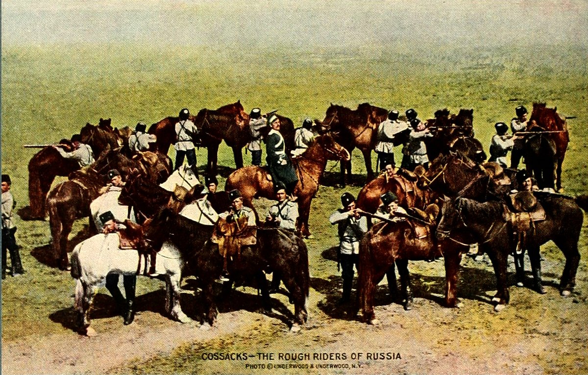 The Cossacks of the river Don pay no taxes, but are liable to military service from eighteen to fifty, and each must furnish his own horse. They are wonderful riders, and excellent scouts or skirmishers. Their hollow circle formation is a favorite one for defense.