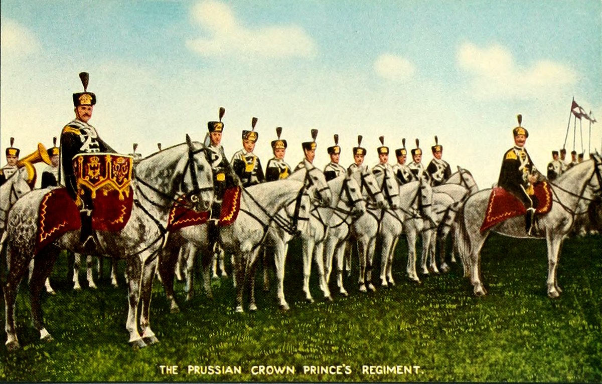 The Crown Prince is always colonel of the Death's Head Hussars, and when he had a "difference" with his father a few years ago, the Kaiser exiled him to his command at Danzig, where the regiment was permanently stationed. In state reviews the Crown Princess often appears in her Death's Head uniform as honorary colonel. Naturally, German noblemen are eager to join this regiment, which is one of the "crack" organizations of the Prussian army.