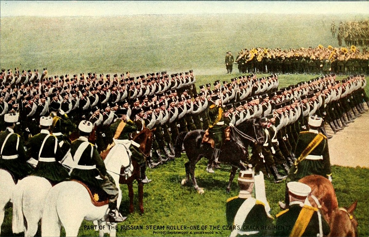 PART OF THE RUSSIAN STEAM ROLLER—ONE OF THE CZAR'S CRACK REGIMENTS