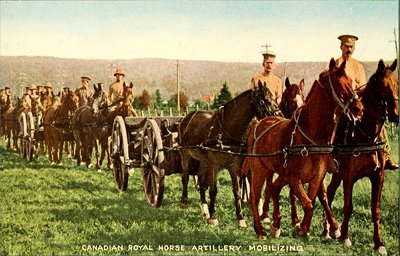 Canadian horses are noted for their strength and beauty. They play a large part in the development of Canada's rich agricultural resources, and the Royal Artillery took the finest of Canadian horses across with them.
