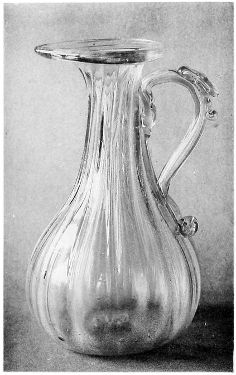 | (1) Jug of pale olive glass, with iridescence. (H. 83⁄8 in.) From Colchester. | ||