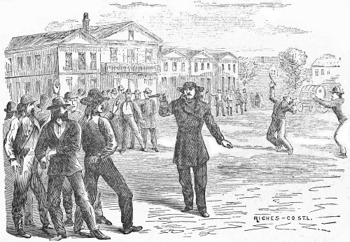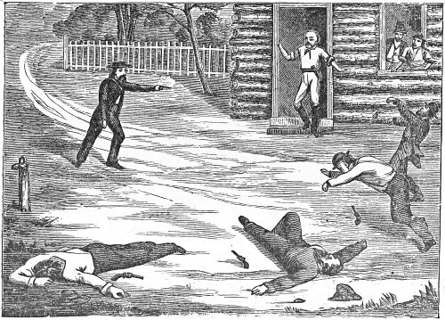 This reply satisfied everybody that there was going to be a death fight. Accordingly, shortly before noon, an immense crowd had assembled on the public square to see the duel.