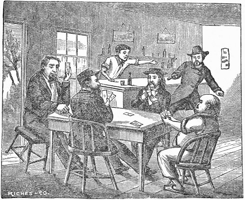 Springfield was a great place for gamblers, and Bill and Dave belonged to the profession. One night, the two met in a saloon on the north side of the square, and Dave proposed a game with Bill, which, not being agreeable, Dave offered to stake a friend to play Bill. Thus the game was started. When36 Bill sat down to the game he drew out his heavy gold watch and laid it on the table, remarking that he intended to quit the game promptly at 12 o’clock. After nearly two hours playing he had won two hundred dollars, the greater part of which had come from Dave as a loan to his friend. Having broke the friend and Dave also, the latter remarked, “Bill, you’ve got money now, so pay me that forty dollars you’ve been owing me so long.”