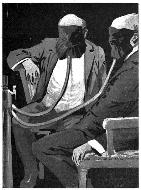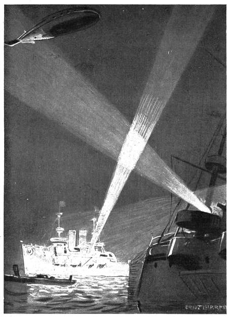 „Keine Meldung vom Schiff?“ fragte der Kapitän, sich ans Steuer begebend, und gerade, als er fragte, kam ein zuckendes, blitzartiges Aufleuchten und ein metallisches Knistern von dem Telephonapparat zu seinen Füßen. Er nahm den kombinierten Reciver und Transmitter sofort auf und befestigt ihn an seinem Kopfe.
