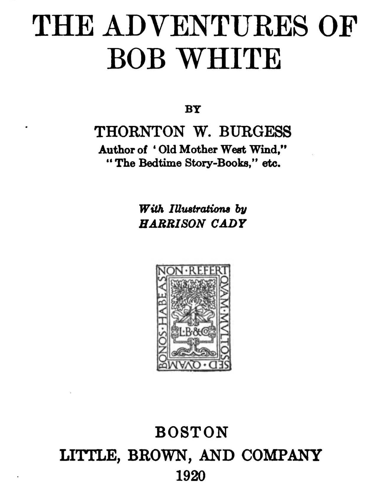 So this is all about Bob White and his family because Ol' Mistah Buzzard has come all the way up from Ol' Virginny for me to tell you about him and his adventures. I've promised to do it in the very next book.