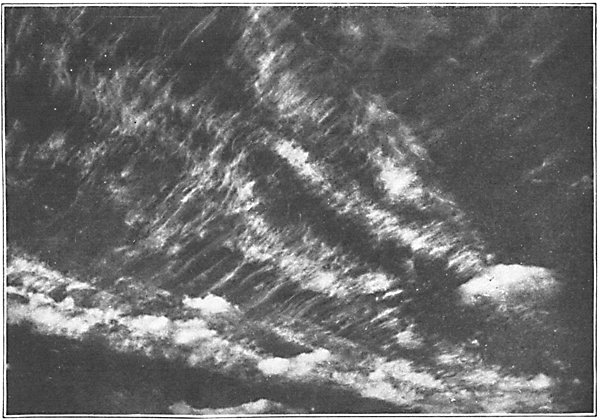 The loftiest atmospheric phenomenon that we can observe directly is the aurora, which has been photographed up to heights of more than 300 miles. The altitude of the aurora is determined by simultaneous observations made at two or more points, and the same is true of shooting stars and their trails, which seem to be especially numerous between the levels of sixty and ninety miles. The so-called “noctilucent clouds,” which shone by reflected sunlight throughout the night for some years after18 the great eruption of Krakatoa and were supposed to consist of fine dust from that volcano, were probably about fifty miles above the earth. From the duration of twilight we infer that above about forty-five miles the air is so tenuous that it cannot reflect sunlight to the earth. Clouds furnish information concerning the movements of the air at various levels up to ten miles or more. Observations on mountains contribute further to our knowledge of the atmosphere above the ordinary levels of habitation.